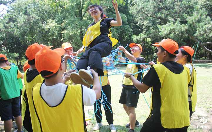 項目任務:通過有限的資源編織一個繩床,將本隊所有隊員利用繩床拋接體驗